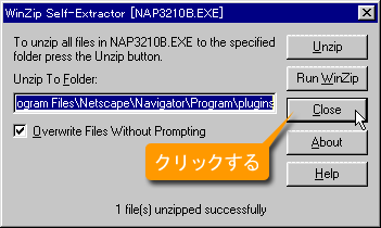 | (4)「Close」ボタンをクリックして、WinZip を終了します。 | ||||||||||||||||||||