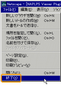 | (5)ここで一旦 Netscape Navigator を終了します。 複数の Netscape Navigator を起動している場合は、すべてを終了させます |