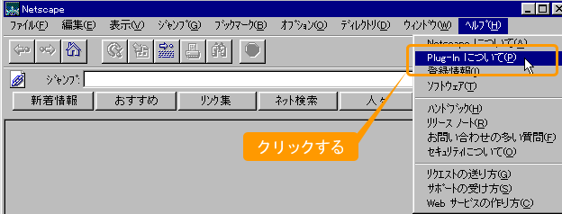 | (2)メニューバーから「ヘルプ」→「Plug-in について」をクリックします。 | ||||||||||||||||||||
